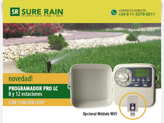 El Programador Pro-LC ofrece una nueva perspectiva en programadores económicos con todas las ventajas y beneficios del programador Pro Ex 2.0. Disponible en modelos para 8 o 12 estaciones para interior y exterior, este programador ofrece múltiples funciones interesantes, además de una programación muy sencilla e intuitiva. El PRO-LC es el programador ideal para riegos pequeños/medianos.