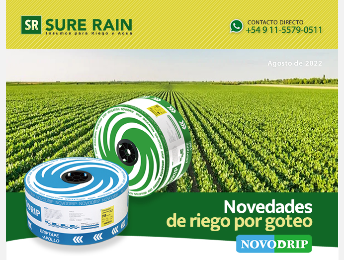 La cinta de riego por goteo Novodrip Apollo puede ayudarlo a mejorar el rendimiento, la eficiencia en el uso del agua, y la calidad de los cultivos al poner agua y fertilizante justo dónde el cultivo lo necesita. Apollo es la cinta de goteo de laberinto continuo ideal para cultivo de hortalizas y de flores.
